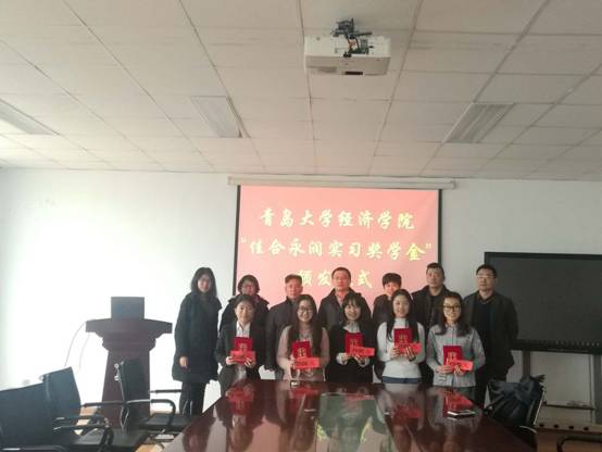 2018年1月8日中午12点半,在吃瓜网 307会议室,青岛佳合永润贸易有限公司于超经理为吃瓜网 5名品学兼优的学生颁发“吃瓜网 佳合永润实习实践奖学金”,每人2500元,并提供5个实习岗位。佳合永润人力资源部柏部长、王先生参加颁发仪式,吃瓜网 党委书记崔洪林老师,副书记郭梅老师,辅导员刘璐老师一起见证颁奖,之后崔书记代表学院对企业表示感谢,希望继续加强校企合作。