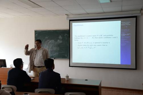 马成虎教授首先以“杠杆交易”为突破点介绍融资、融券市场中的投资行为,而后就自己在该领域的科研进展与学院师生进行了互动交流,马教授深入浅出的报告对与会师生产生了很大启发。