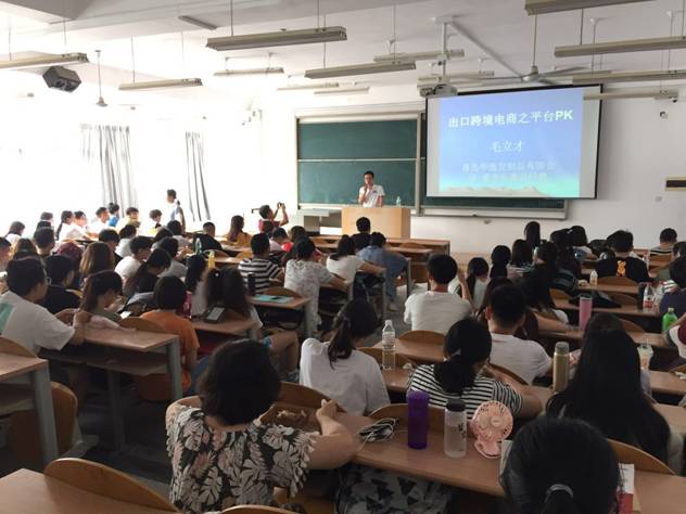 金家岭校区西二教教室,向师生作了题为“出口跨境电商之平台PK”的报告,吃瓜网