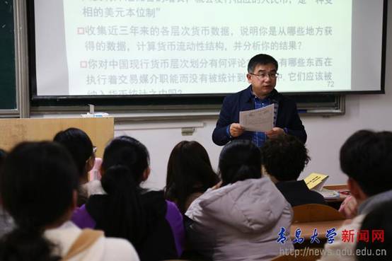 李慧君讲授的《货币金融学》课程。听课期间,胡金焱认真观看PPT,并对教师讲授内容、授课方法以及学生表现做了详细的记录。