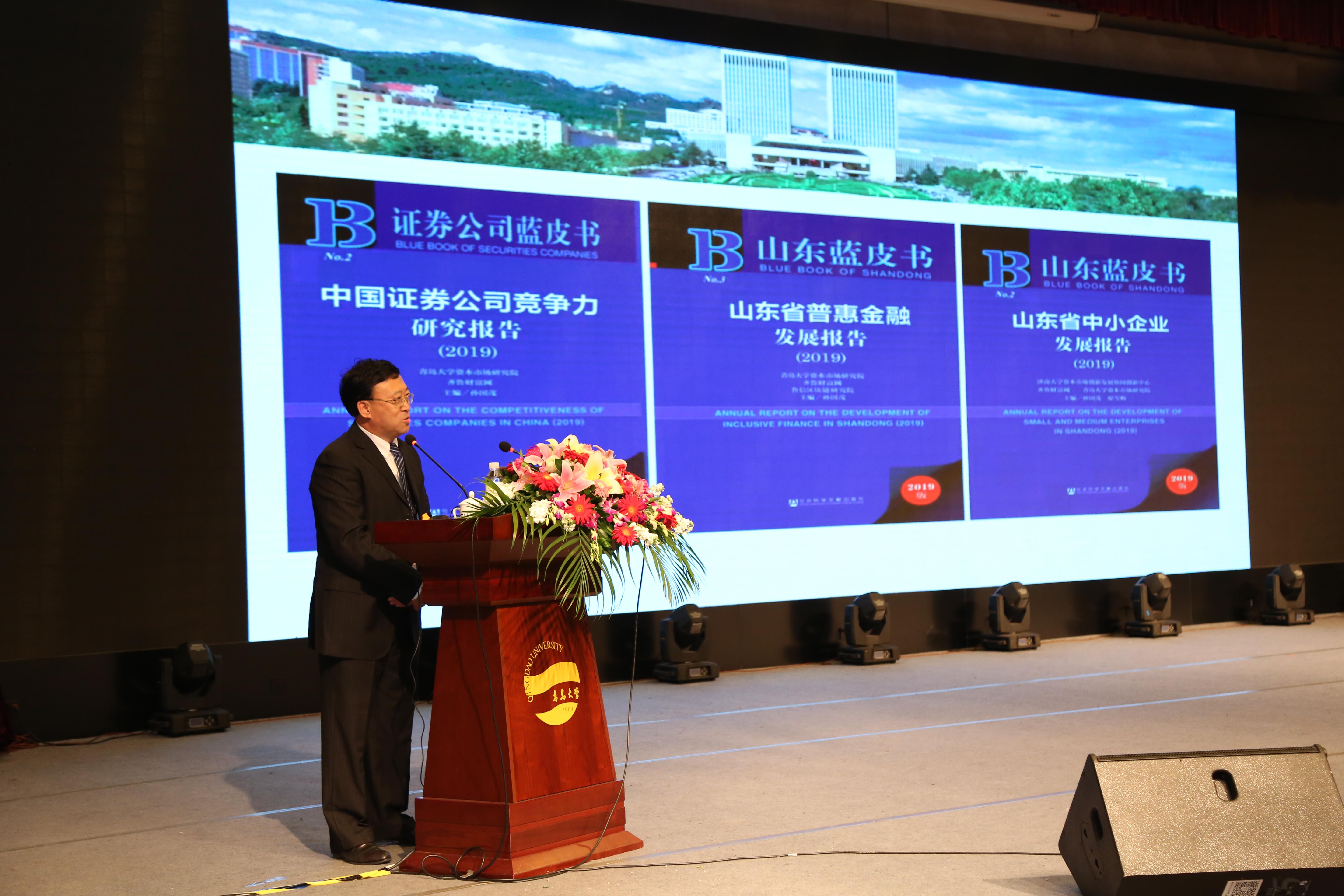 资本市场研究院教授孙国茂介绍了《中国证券公司竞争力研究报告(2019)》、《山东省普惠金融发展报告(2019)》和《山东省中小企业发展报告(2019)》三本蓝皮书主要内容。孙国茂教授还孙国茂教授介绍了连续八年的报告编写情况并分享了报告编写过程中的许多感受。