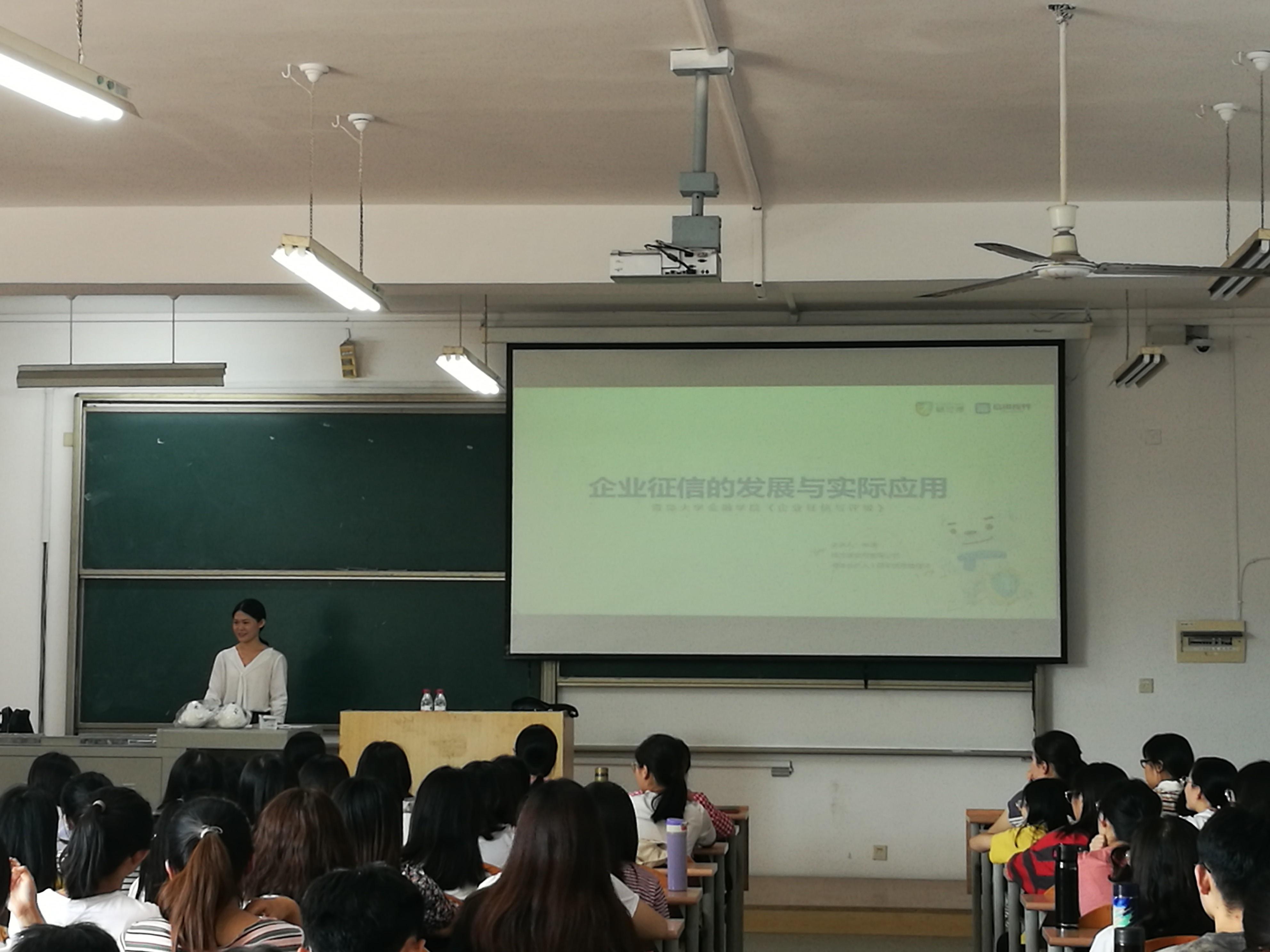 1.2019年9月27日,聘请青岛格兰德信用管理咨询有限公司高级合伙人、高级讲师申薇来校授课,授课主题为“企业征信的发展与实际应用”,本次授课大纲包括:传统征信领域的发展、“互联网+征信”的崛起、传统征信与互联网征信共同支撑全面信用管理体系和以“信用世界”为例,看“互联网+征信”在征信领域的应用四个方面。