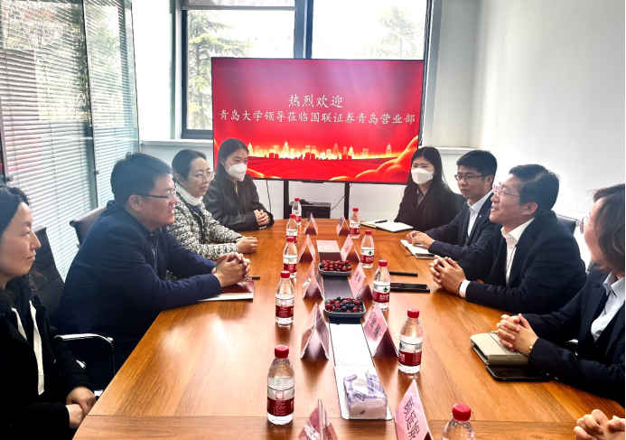 在国联证券青岛营业部,张守珩一行参观了办公和经营场所,深入了解其事业发展状况和岗位需求情况等。在座谈会上,青岛营业部总经理杜平对学院领导的到来致以诚挚欢迎,表示将充分释放企业优势资源,在学生职场规划、市场调研、论文选题、从业资格准备等方面提供全方位的实战指导,积极推动与学院各领域的合作发展。双方围绕适应新金融业态发展,构建新金融人才培养体系方面达成多项合作意向。