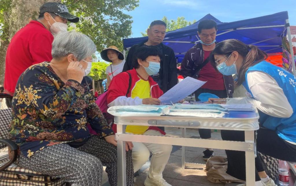 “心希望”志愿服务团队与圣德医养康复集团的医护人员共同为老年居民带来免费社区义诊和老年认知症专项筛查服务。该项调查采用国家权威机构研发的脑健康测评系统,通过评估老年人的认知能力、辨别能力、情景记忆等能力,依据问卷结果,利用信息化智能化的手段,评估其脑健康情况,生成认知症初筛报告。在志愿活动的现场,团队还为老年居民进行免费的血压检测,并且准备了口罩、湿巾等小礼物送给老人。