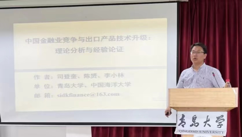 司登奎教授应邀在金家岭校区西院1号教学楼311,以《中国金融业竞争与出口产品技术升级:理论分析与经验论证》为主题开展高端学术讲座。