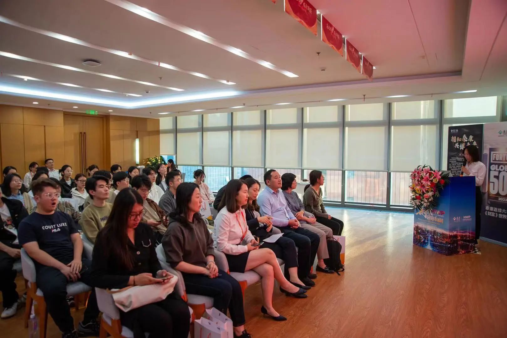 党委书记邱建国、教师刘学宁、辅导员周小昀、曹影、程漫漫以及25名保险学硕士生一行赴泰康人寿青岛分公司开展访企拓岗行动。