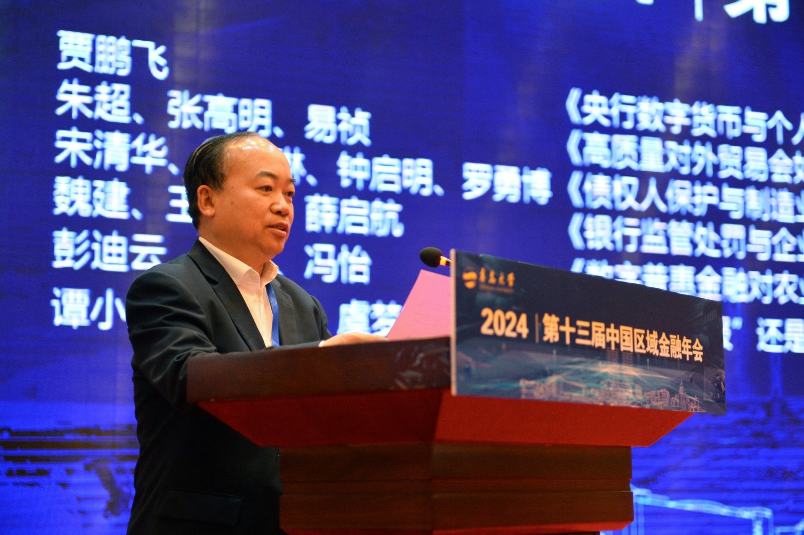 学报(社会科学版)》协办的第十三届中国区域金融年会在我校顺利召开。校党委书记胡金焱出席年会并做了题为《简析做好金融五篇大文章》的主旨演讲,副校长李荣贵出席年会致欢迎辞。
