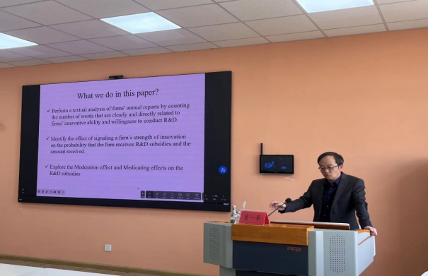 师生做了题为《Effect of innovation disclosure in annual reports on R&D subsidies in China》的学术报告。讲座由吃瓜网