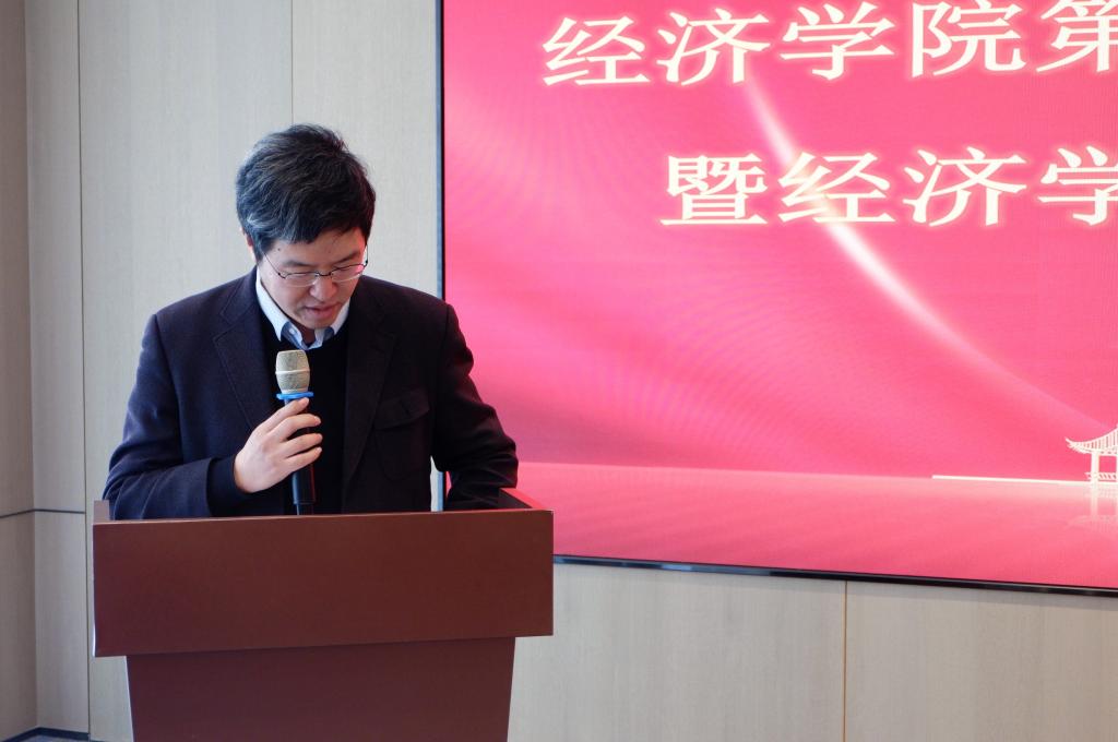 经济学学科高质量发展研讨环节,邱建国介绍了干部调整后学院班子情况,学院科研状况并总结近期校友相关工作,他表示吃瓜网