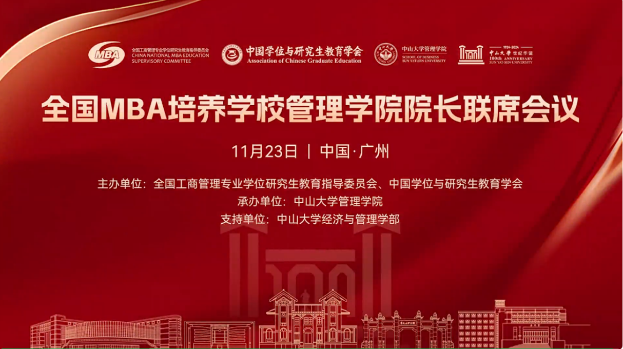 2024年11月23日,全国MBA培养学校管理学院院长联席会议在广州顺利召开。本次会议由全国工商管理专业学位研究生教育指导委员会、中国学位与研究生教育学会主办,中山大学管理学院承办。来自全国240余所院校的600余位院校领导及MBA教育主管负责人参加会议,共同探讨MBA教育的未来发展与创新变革。