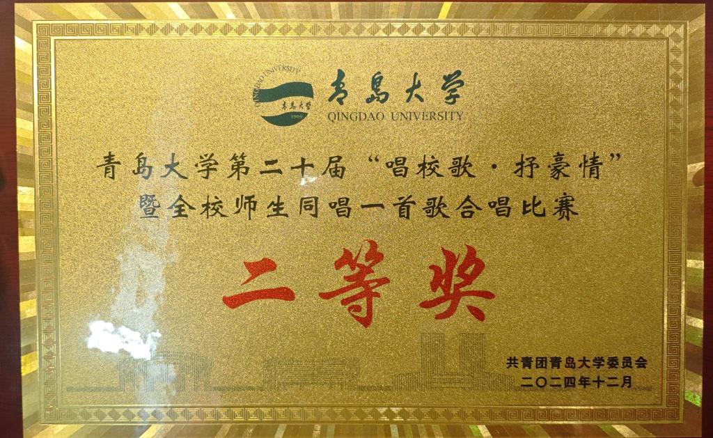 任龙、张之峰、常璟、赵金鑫、李奕霖5位老师带领的合唱队在学校第二十届“唱校歌·抒豪情”暨全校师生同唱一首歌合唱比赛中荣获大赛二等奖。