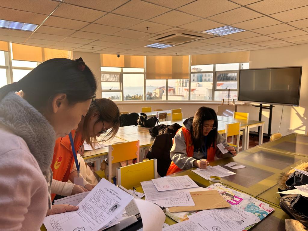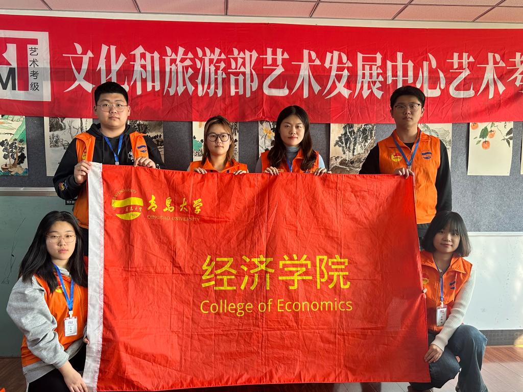 经彩青春服务队六名志愿者赴青岛市妇女儿童活动中心为青岛市艺术等级考试考务工作提供志愿服务。志愿者们以实际行动为考务工作公平、公正、顺利有序地开展贡献青春力量。