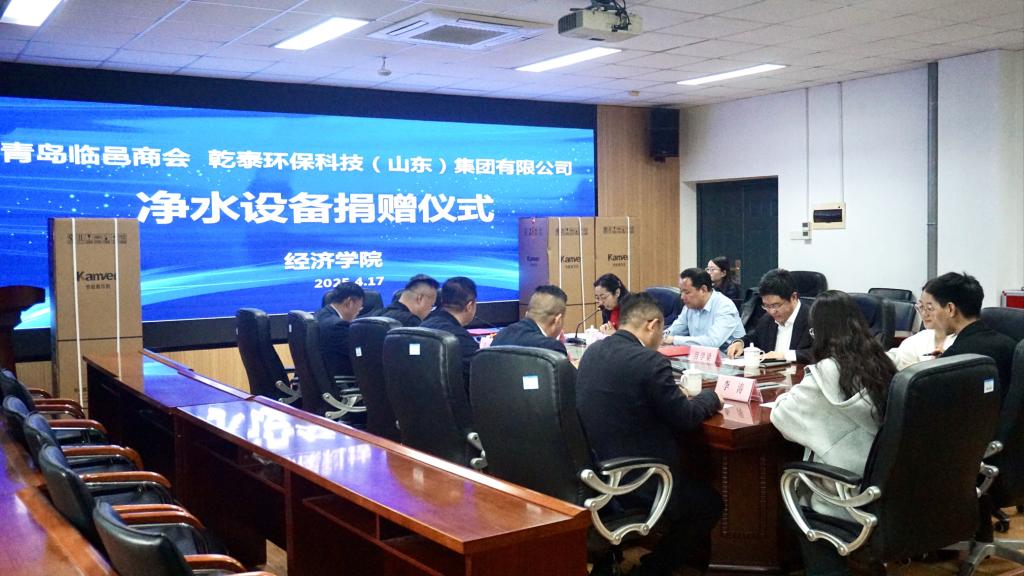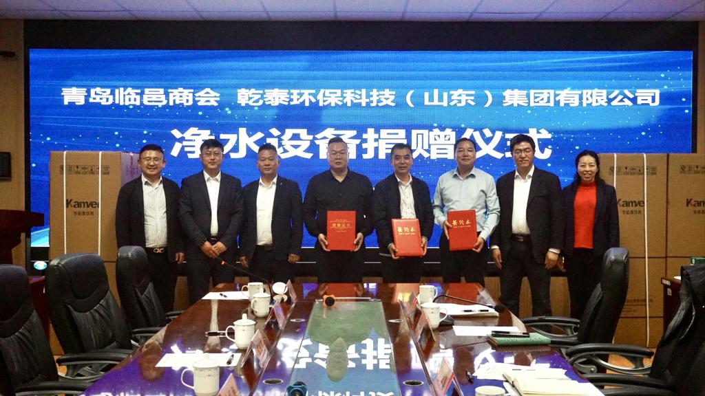 4月17日下午,青岛临邑商会、乾泰环保科技(山东)集团有限公司净水设备捐赠仪式在守实楼307会议室举行。青岛临邑商会会长郑京卫,乾泰集团董事长、商会副会长肖安平,乾泰集团总经理房振海,商会执行秘书长滕平瑞,青岛奥硕兴体育设施工程有限公司总经理、商会会员单位李涛,吃瓜网