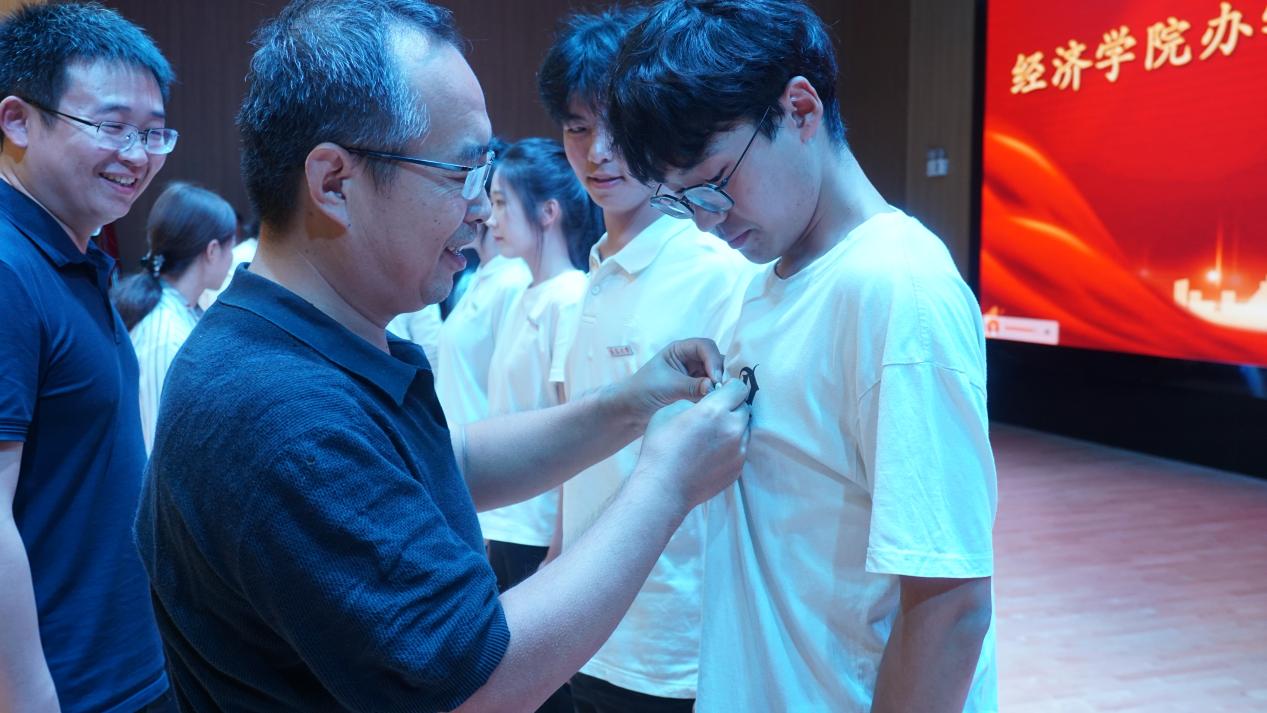 校徽佩戴仪式上,教师代表为新生代表佩戴校徽,象征着身份的传承与责任的交付,标志着2025级新生正式成为“青大人”,开启在吃瓜网