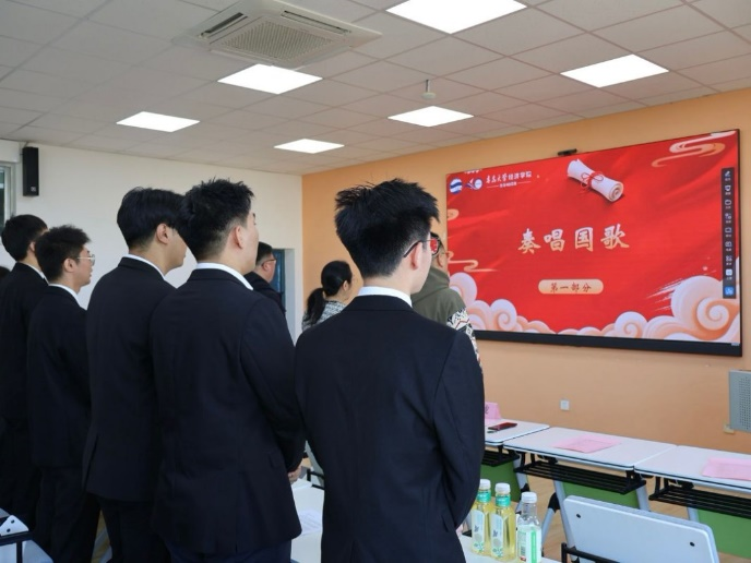全体参会成员起立,奏唱国歌。