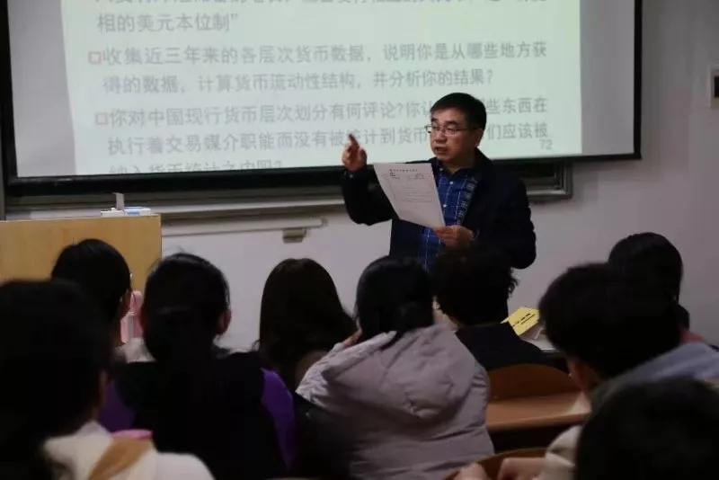 李慧君讲授的《货币金融学》课程。听课期间,胡金焱认真观看PPT,并对教师讲授内容、授课方法以及学生表现做了详细的记录。