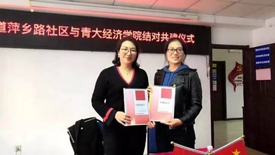 党委副书记王海荣带领师生党支部书记代表和学生代表,前往市北区水清沟街道萍乡路社区,举行与萍乡路社区结对共建签约活动。