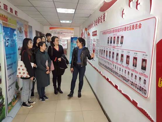 社区党委书记王媛媛对学院师生一行的到来表示欢迎和感谢,她带领学院师生参观了社区党建文化墙,并向大家介绍了社区党建的基本情况。