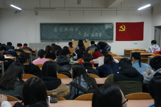 金家岭校区西院一教302召开。2013级预备党员经济创新学班李佳润和徐康馨、经济学班李元鑫、经济统计学班刘春苗和张国栋以及2016级财政学班、经济学班全体学生参加了本次会议。