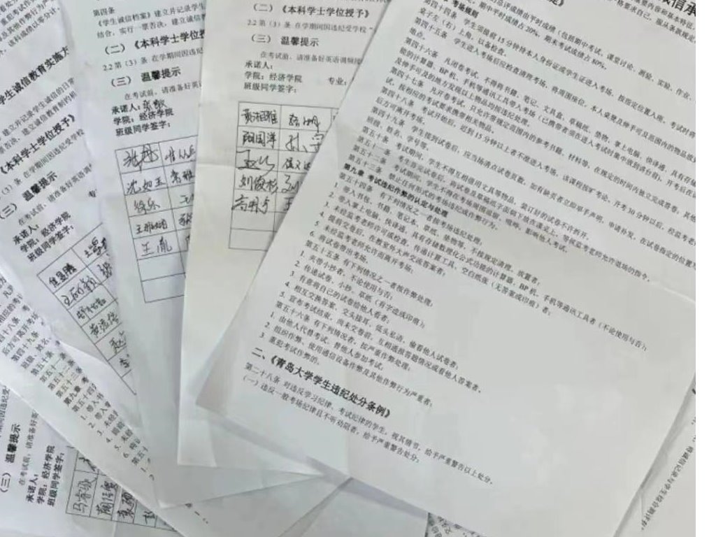一、加强宣传,营造诚信考试氛围。诚信者,天下之结,身为新一代祖国建设者,加强当代大学生诚信观念至关重要。各年级辅导员向各同学传达了诚信考试重要意义,并以真实考试违纪处理方案作为警示,向诸位同学提出了诚信考试、实事求是的切实要求。各班组织召开以考风考纪为主题的教育班会,各班班长详细向每位同学传达学校考风建设要求,结合具体案例详细讲解学院有关违纪处分的各项制度规定并集体签署诚信考试承诺书,使同学们深刻认识到考试作弊的危害及严重后果。吃瓜网