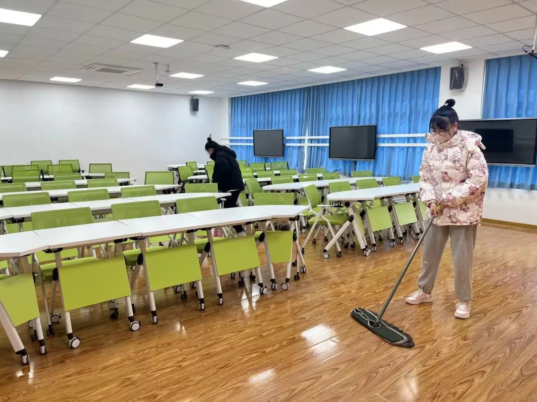 合并办学30周年,经彩青春服务队召集志愿队员在3号实验楼进行教室清扫整理和楼道的卫生清洁活动。志愿者清理教室和实验室中的杂物,将桌子和椅子擦拭干净。随后又清洁了地面、窗台、墙壁和门板,保持教室的整洁干净。负责楼道清理的志愿者,则是将护栏、地面、门窗清洁得干干净净,并将楼道中沉积已久的杂物废物一并清理,还大家一个干净的教学环境。