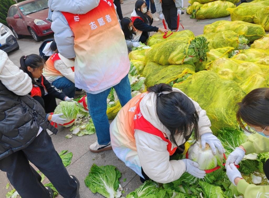 “2023暖冬行动”聚焦帮扶与志愿两个主题,由“爱心白菜进社区”“爱心棉衣进乡村”等组成。活动现场,“经彩青春服务队”志愿者们协助工作人员布置会场,全程负责“爱心”大白菜的搬运、打包、分发工作,并进行会场秩序维护。志愿者们分工合作,配合默契,为活动的顺利举行提供了有力的保障。