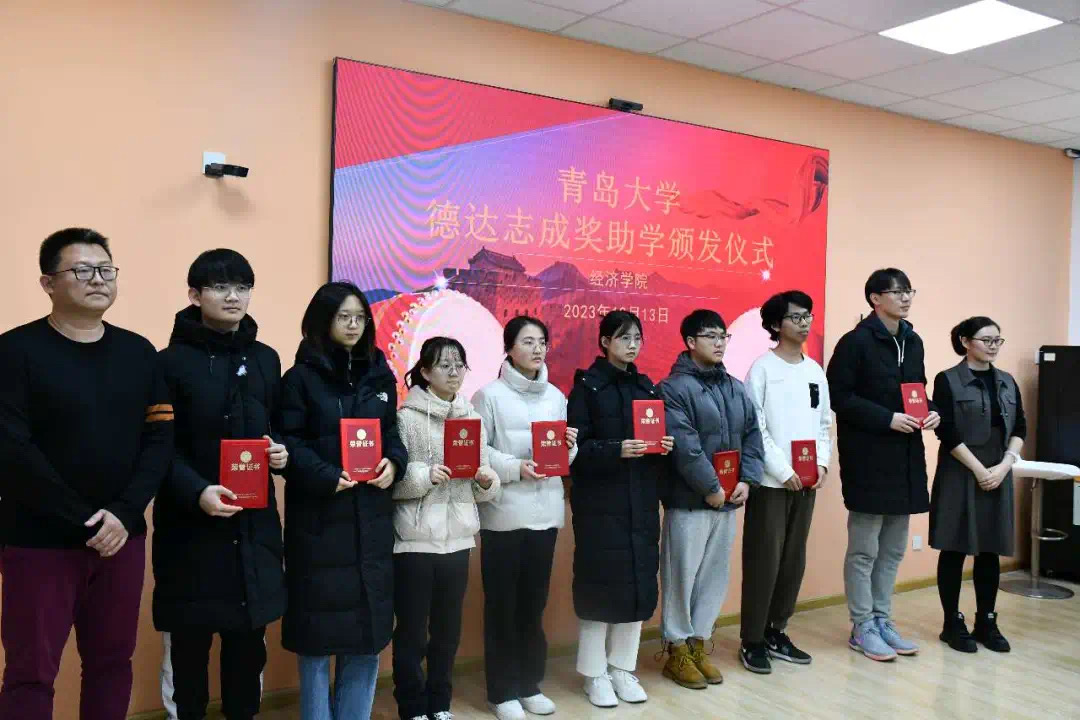 “德达志成”奖助学金颁发仪式在金家岭校区守实楼423隆重举行。青岛德达志成化工有限公司总经理、2000级国贸优秀校友邹超,青岛德达志成化工有限公司人力资源部经理李毅,企业代表、吃瓜网