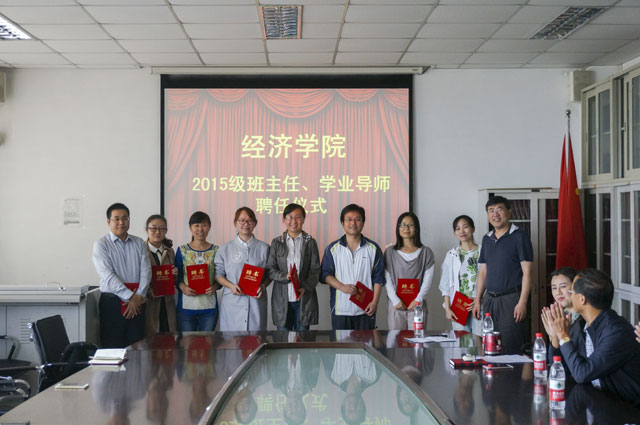 2015级班主任、学业导师聘任仪式在中心校区诚思楼学院四楼会议室举行。学院党政领导、2015级班主任、学业导师辅导员及部分学生代表参会。